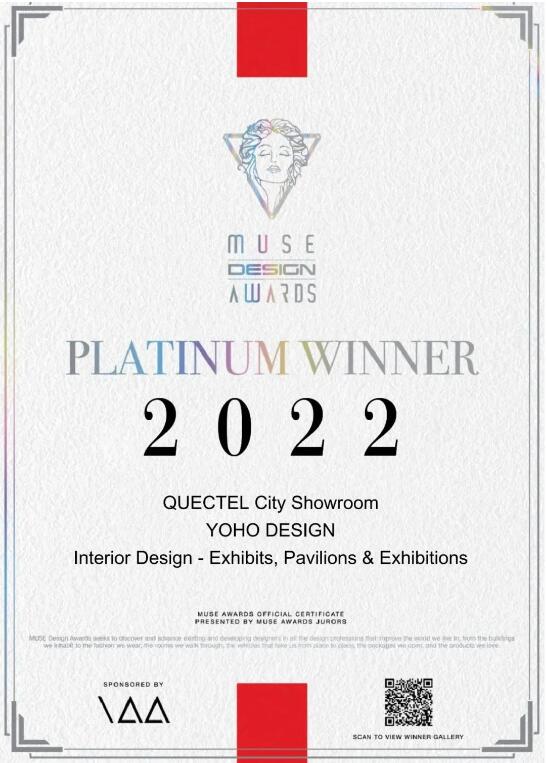 近日,国际知名大赛美国缪斯设计奖(MUSE DESIGN AWARDS)公布了2022年度最终获奖名单,91免费看片APP设计的参赛作品「QUECTEL城市展厅」在来自全球的6000多部作品中拔得头筹,斩获缪斯设计奖展览类铂金奖。